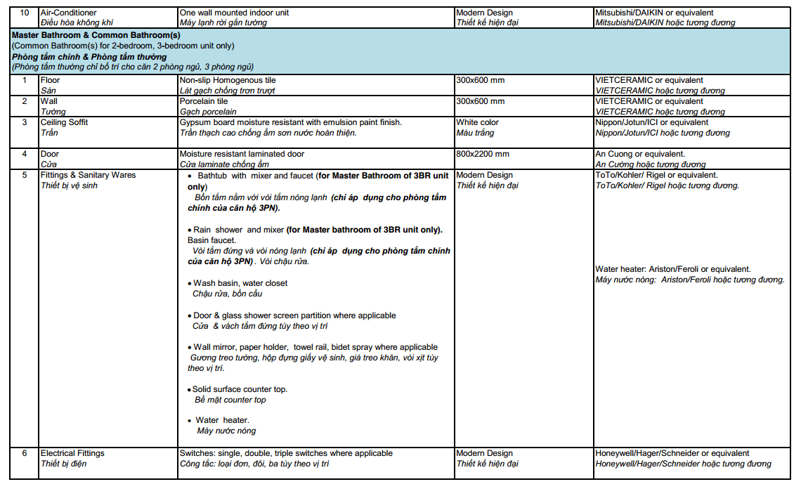 Căn hộ One Verandah bàn giao hoàn thiện cao cấp gồm: