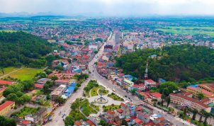 Thị xã Bến Cát nhìn từ trên cao với các khu dân cư sầm uất đan xen các khu công nghiệp lớn